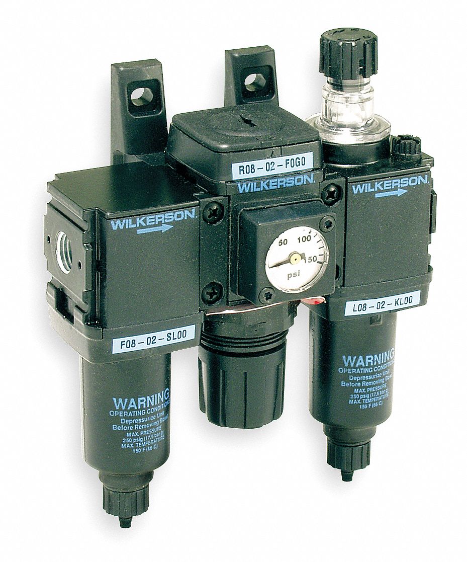 WILKERSON Filter/Regulator/Lubricator, 1/4 in NPT, 0 to 125 psi Wilkerson Air Filter/Regulator/Lubricator a wilkerson filter, regulator, and lubricator are combined to provide clean, lubricated compressed air at your required pressure. a wilkerson filter, regulator, and lubricator are combined to provide clean, lubricated compressed air at your required pressure. Filter + regulator + lubricator. these frls by wilkerson are complete systems that include a filter, a regulator, and a lubricator.. Wilkerson Air Filter/Regulator/Lubricator.